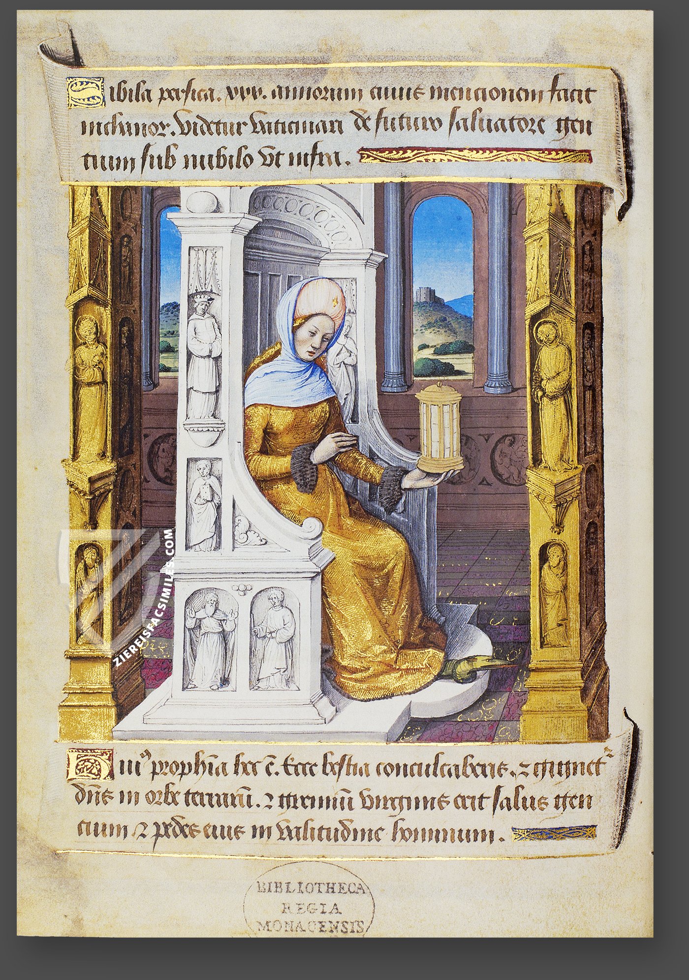 The cycle of the twelve Sibyls makes this precious, lateβ15th century French manuscript something truly special. Famed in antiquity as seers, they were reinterpreted from the 2nd century on and were henceforth considered to be prophetesses of Christ in Christian iconography. As such, the Sibyls are depicted in the Munich codex. Alongside this original image program, the manuscript with the title Sibyllae et prophetae de Christo Salvatore vaticinantes (The Sibyls and Prophets Who Foretold the Coming of Christ the Redeemer) is impressive first and foremost because of its exceedingly exquisite artistic furnishing.