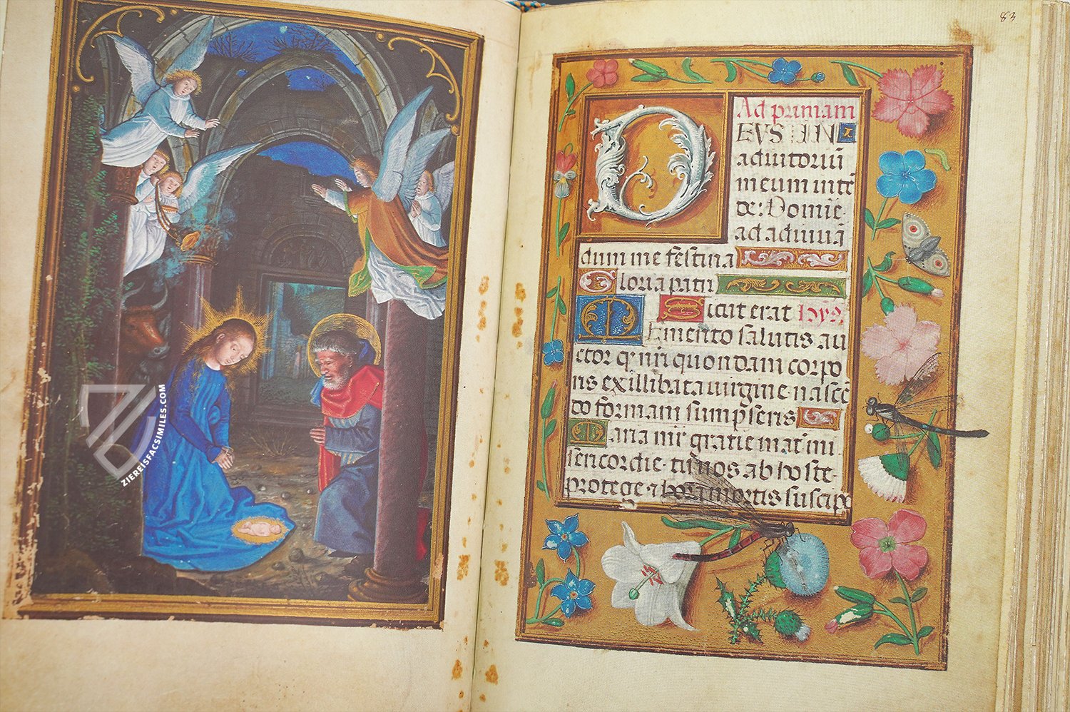 The so-called Flowers Book of Hours is not only one of the most beautiful and splendid masterpieces by the famous illuminator Simon Bening, it is simultaneously counted among the most valuable illuminated manuscripts that was ever made. The religious text of the work is designed according to the internationally available pattern of medieval books of hours. It begins with a calendar, followed by an introductory prayer and excerpts from the four Gospels. Further textual components are an Office of the Virgin, Office of the Dead, as well as penitential Psalms and prayers to high saints. The manuscript displays an incomparable variety of various design patterns. Nearly every page of the private devotional and prayer book is artistically illustrated. Alongside 70 enchanting full-page miniatures, the manuscript contains over 300 pages with uniquely plastic decorations from patterns of plants and animals.