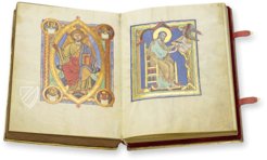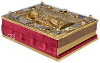 The Speyer Pericopes is an extraordinary magnificent manuscript for the celebration of the liturgical feast days in Speyer Cathedral and was created around 1220 for Konrad IV von Tann (1233 - 1236), who had connections in the highest social circles and later became Bishop of Speyer. Eight talented book artists from Speyer or Trier were responsible for the amazing picture program comprising 22 expressive, gold-decorated miniatures and 70 ornate decorated initials, which has not lost any of its charisma or colour intensity to this day. In keeping with the sacred texts, it features New Testament scenes as well as full-page portraits of the writing Evangelists and an enthroned Christ. Remarkably, the exceptionally sumptuous historical binding of the opulent codex has also been preserved, displaying dozens of precious gemstones and engraved silver plaques framing a gilded figurine of Christ, which probably replaced the original center of the book cover in the 15th century.