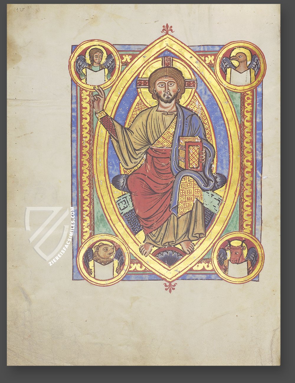 - 17 full-page miniatures made up of 21 individual images, 5 full-page portraits of the Evangelists and Christ and 70 richly decorated historiated initials