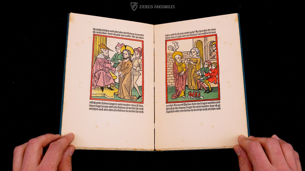 Anton Sorg the Younger (c. 1430–1493) was one of the most prolific and successful printers and publishers of the 15th century, shaping the German-language book market and the incunable period like no other. incunable are books printed before 1500. Between 1475 and 1493, he produced around 240 of them in various editions in his Augsburg printing workshop, which had its own paper mill. He focused on the contemporary demand and therefore concentrated primarily on German and Latin devotional but also theological practical literature. On November 18, 1480, he published the so-called Augsburg Passion, containing a true medieval bestseller: Heinrich von St. Gallen's treatise on the Passion of Christ, Extendit manum, written at the end of the 14th century – the most widely distributed and best-preserved German Passion narrative of the Middle Ages. It tells the story of the Passion of Christ in a folksy manner, incorporating earlier theological treatises. Anton Sorg illustrated his incunable edition of the popular work with 28 full-page, vibrantly colored woodcuts and a large yellow-pink champie initial that marks the beginning of Heinrich's text after the rubricated preface.