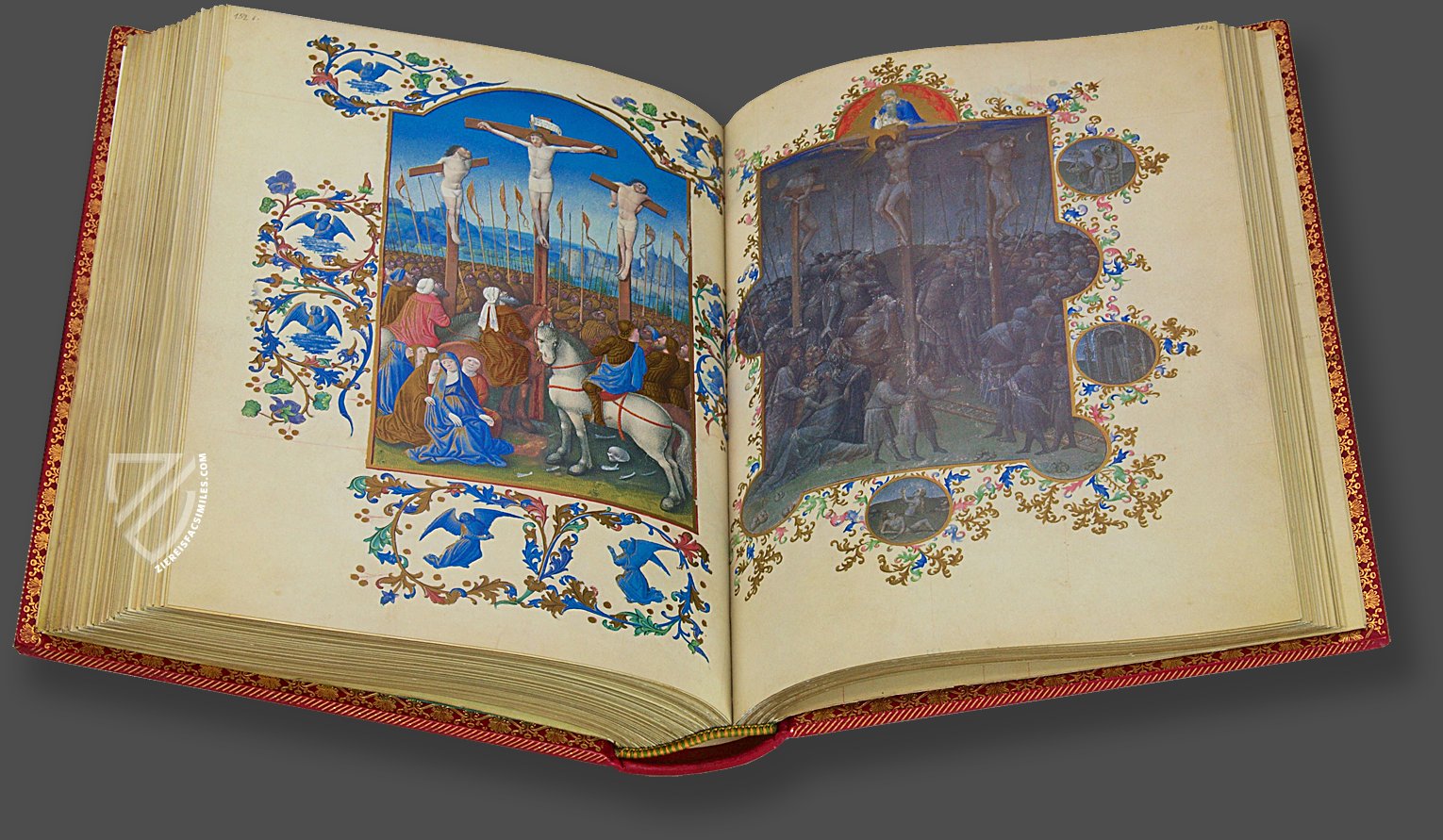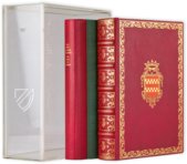 The Très Riches Heures is the book of hours of the famous bibliophile Duke Jean de Berry, which was made by some of the most talented book artists of the Middle Ages between 1411 and 1485. Begun by the Limburg Brothers, it was later finished by Barthélemy d'Eyck and Jean Colombe at the behest of Duke Charles I of Savoy. The manuscript is the most popular and beautiful manuscript of the 15th century. Its stunningly beautiful miniatures, richly adorned with gold and silver, are small masterpieces that remain unforgettable for every beholder. They depict scenes from life at court as well as the everyday lives of farmers. Among the manuscript’s 131 beautiful miniatures, the most famous are the twelve labors of the months, which are unrivalled to this day in their quality. Finally, the meticulously written script of this masterpiece of Flemish art is adorned by more than 3,000 gilded initials.