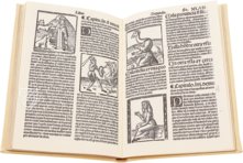The Travels of Sir John Mandeville was one of the most popular medieval travelogues and lets the reader know from the beginning what is in stock for them: “Whoever wanted to know many things about the world should buy this book and will know things which will frighten him.” Originally appearing in the 14th century, the travelogue takes the reader on a 30-year journey to the Holy Land and beyond into the furthermost and most exotic realms of the world as it was then known. The traveler and author of the work was John Mandeville, a cultured Englishman whose identity is still a mystery. His wondrous tales continued to enjoy great popularity in 16th century Spain, as this Spanish print from 1524 impressively demonstrates. It is the second edition of the Spanish translation, printed by Juan Navarro in Valencia and illustrated with countless column-width woodcuts that bring the reader close to the miraculous creatures the author describes.