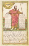 The half-page miniature is accompanied by parables and proverbs, as well as biblical and secular verses. In addition to justice, the other cardinal virtues are prudence, temperance and fortitude, which are followed by the theological virtues of love, hope and faith.