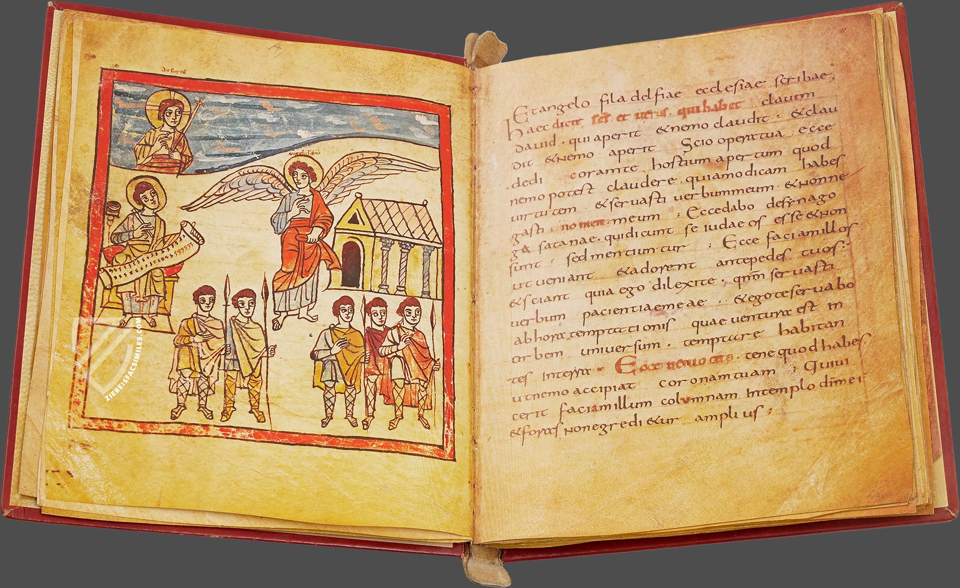 The Treves Apocalypse, so-called after its present place of conservation, not only represents the first illustrated version of the Revelation of St. John that we know of, but also features the most comprehensive illustrated cycle of this biblical book that survives from the Early Middle Ages. What makes the Treves Apocalypse (Greek for revelation) so special, is its unique painted decoration which is unparalleled in contemporary Carolingian illumination. Its 74 full-page miniatures in red frames each illustrate a sequence of text from this last book of the New Testament, which has been ascribed to an unknown St. John. The enormous iconographic value of the codex is due to the fact that it is clearly marked by Paleochristian, presumably Roman origins. This makes the Treves Apocalypse one of the few testimonies reflecting late classical artistic creativity, a source to be tapped later by many medieval artists.