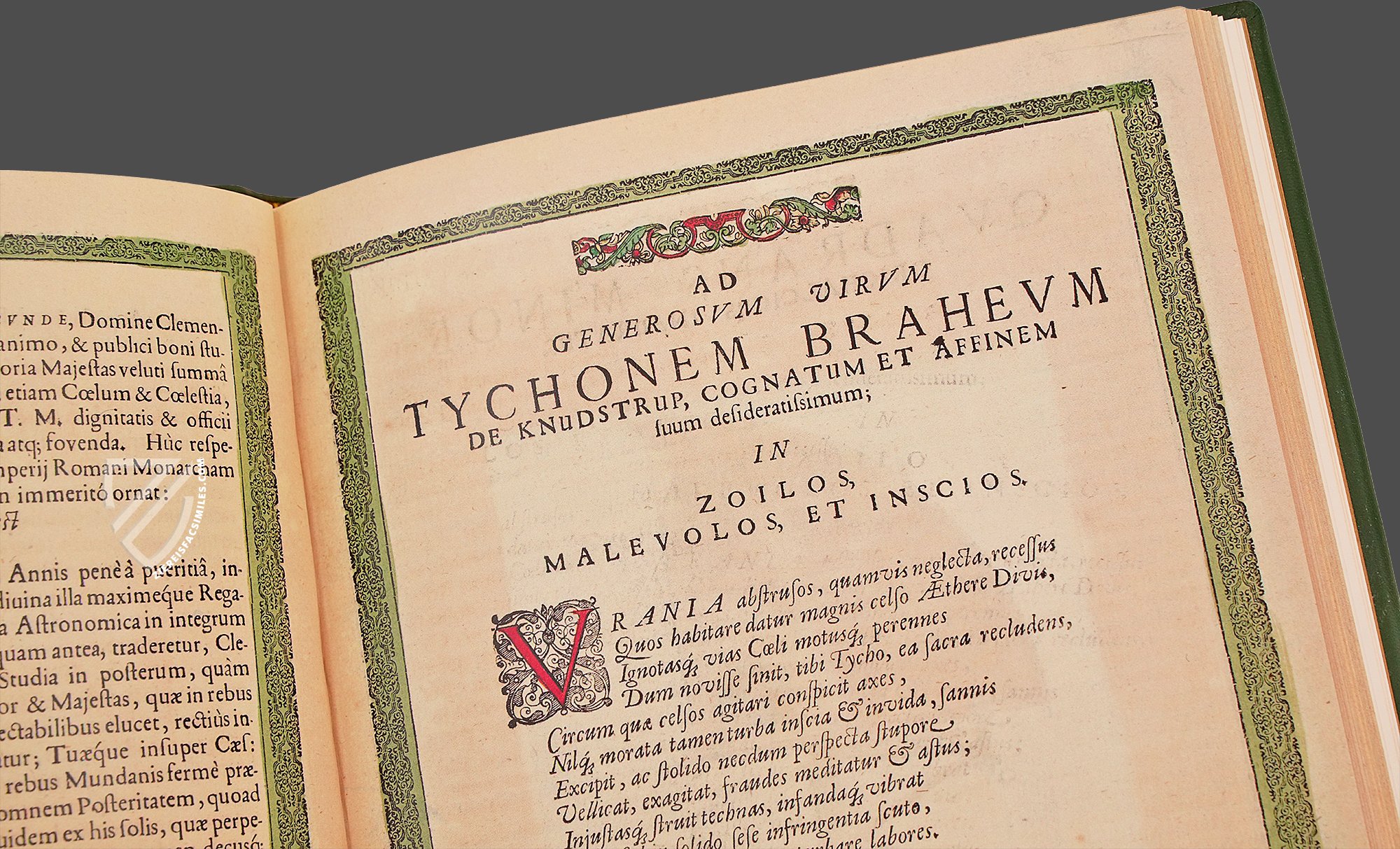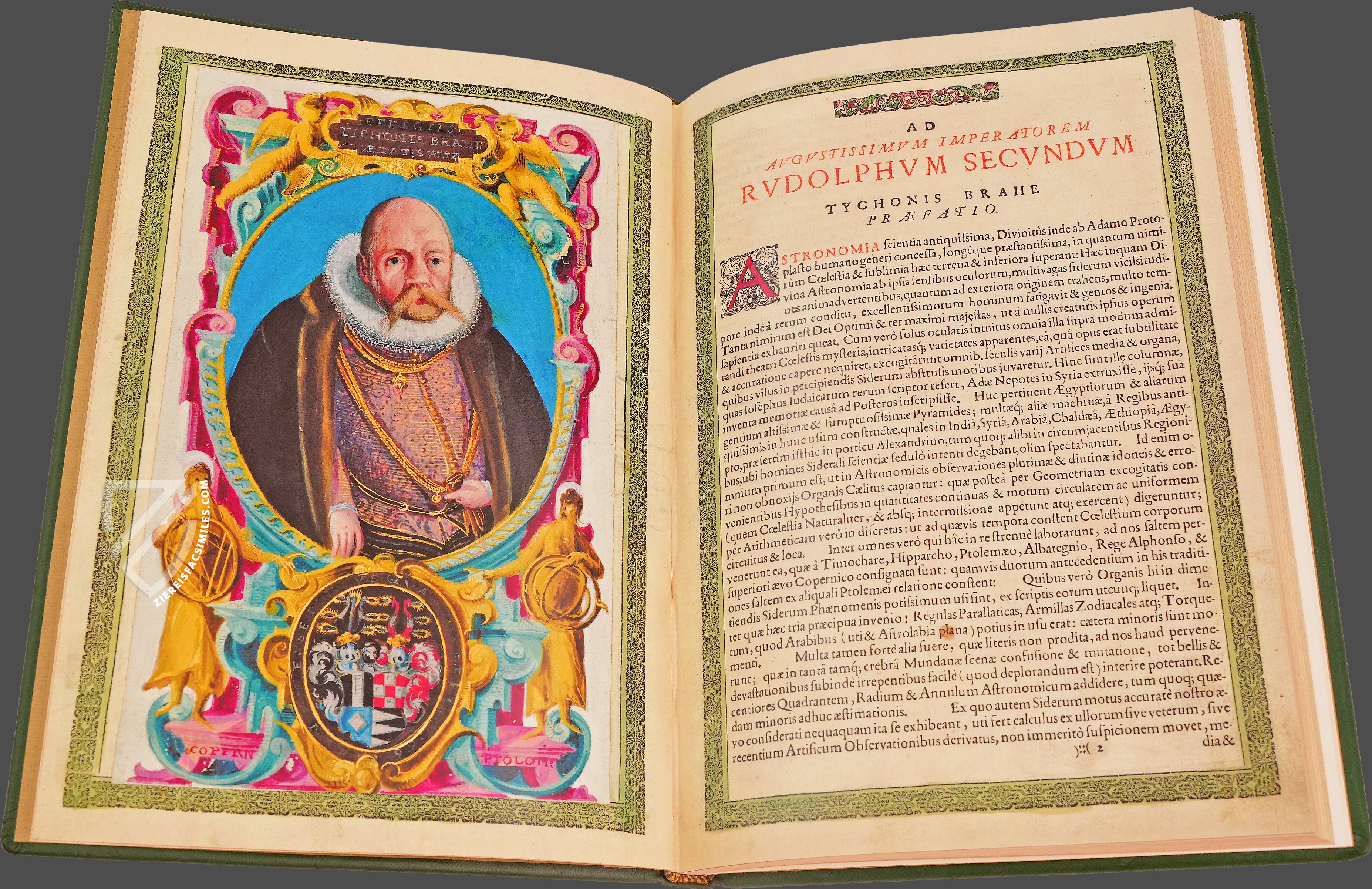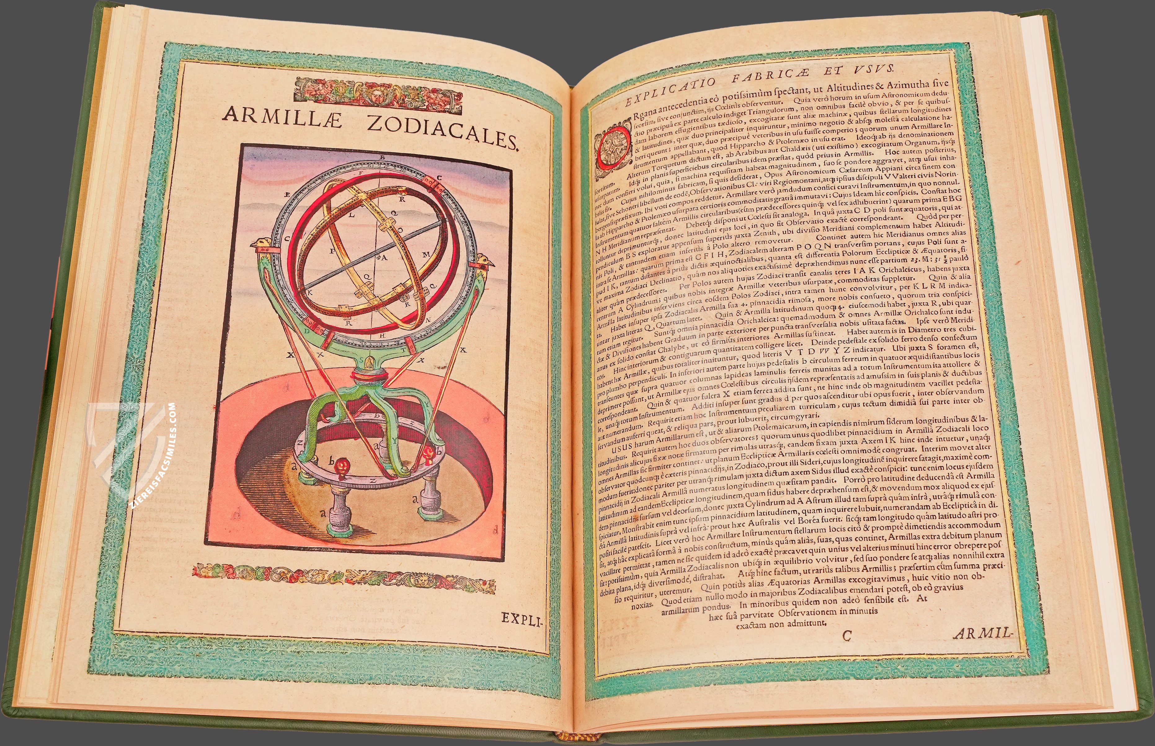 Tycho Brahe (1546–1601) went down in history as an astronomer primarily because of his incredibly comprehensive and precise observations of the heavens, which he carried out without the aid of any lenses — i.e., without a telescope — and which later enabled Johannes Kepler (1571–1630) to discover his groundbreaking findings on planetary motion. With his methodology of repeated and increasingly accurate measurement and reverification, which he was only able to realize with a whole bunch of assistants, he also had a decisive influence on the scientific ideal that is still valid today. None of this would have been possible without the instruments he developed. He recorded his designs in an elaborately illustrated catalog with detailed descriptions: Tycho de Brahe: Astronomiae Instauratae Mechanica. With its accurate and artistically colored, full-page woodcuts and copperplate engravings, it is without question one of the most remarkable scientific books of the Renaissance. The Saxon State Library preserves a copy of the brilliant first edition, which was printed in Wandsbek in 1598 on Brahe's own printing press.
