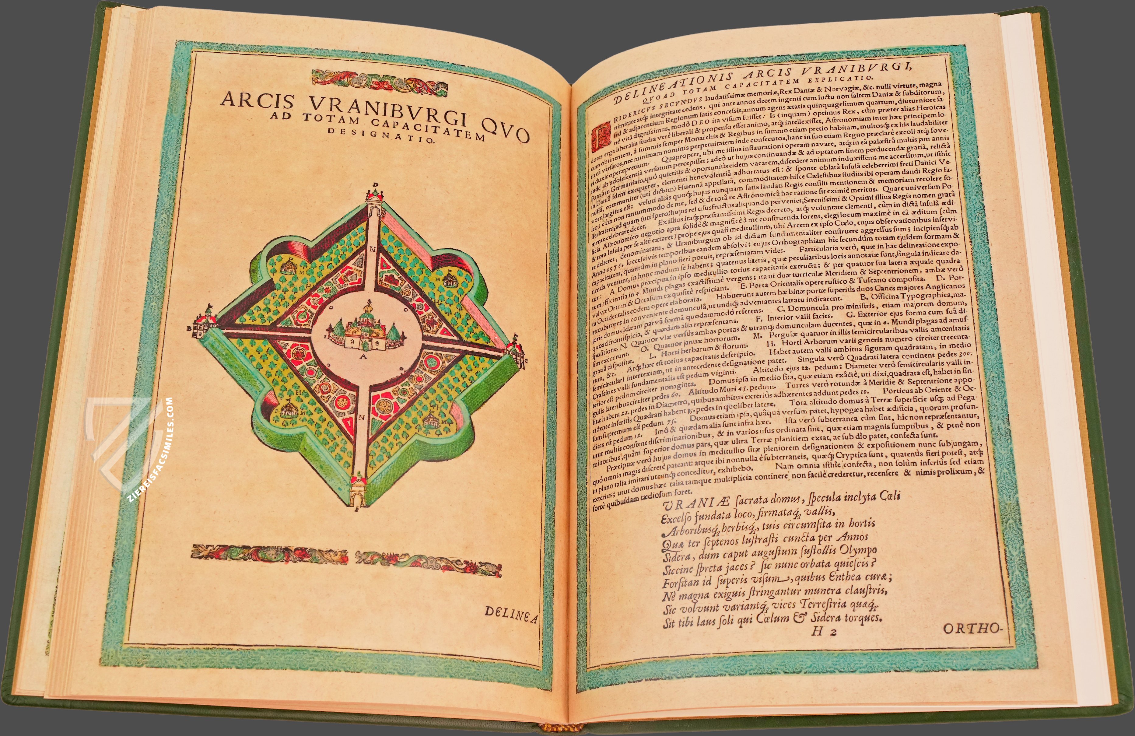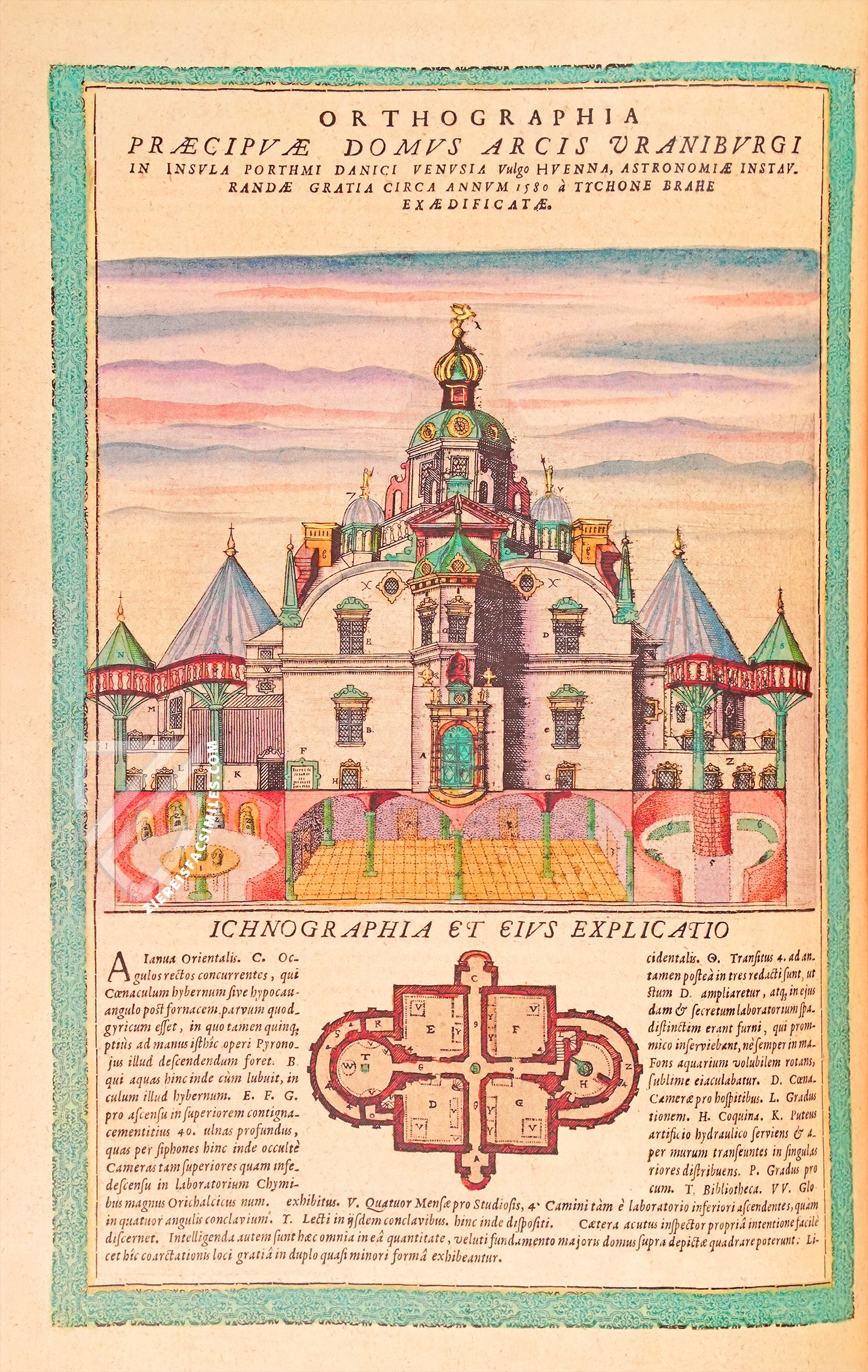 Frederick II not only supported Tycho Brahe's astronomical research as such, but also covered the costs of building his legendary observatory on the island of Ven, among other things. The impressive little castle, which can be seen here in cross-section and ground plan, was built between 1576 and 1580 in cooperation with leading architects and sculptors and was dedicated to the muse of astronomy, Urania.