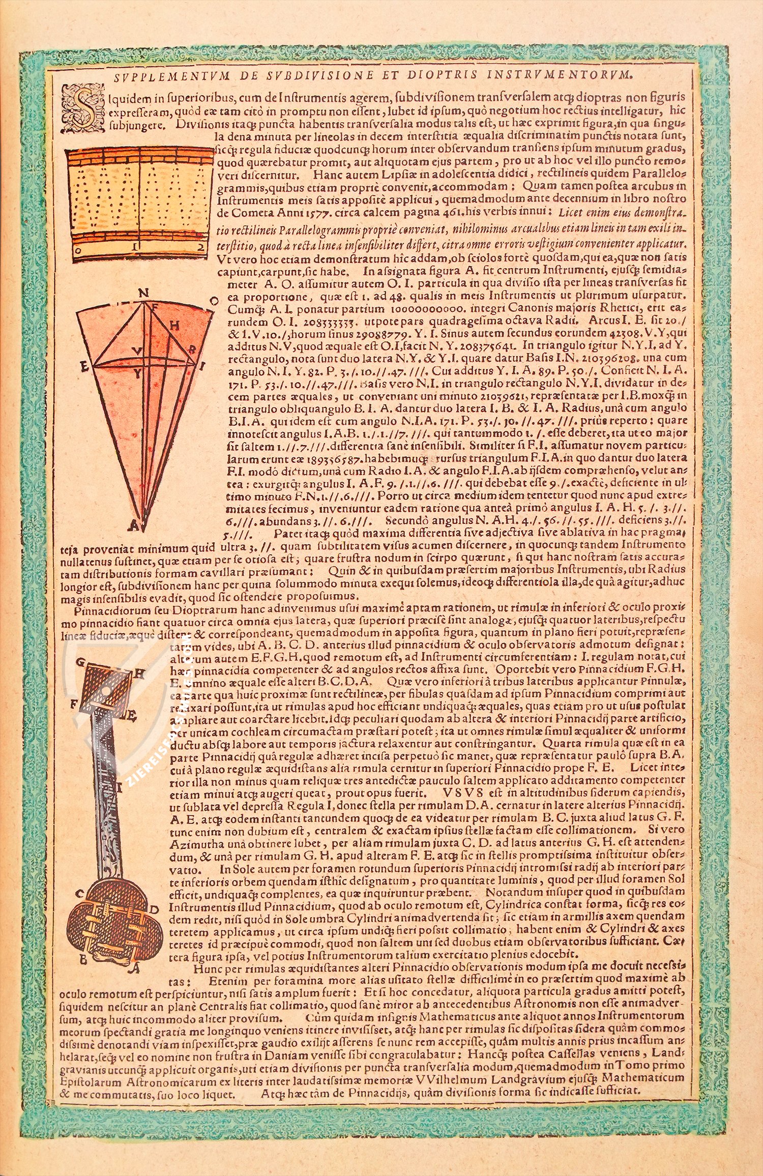 - 22 illustrations of Brahe's astronomical instruments (4 engraved and 18 woodcut), 9 additional woodcut plans, diagrams and titles