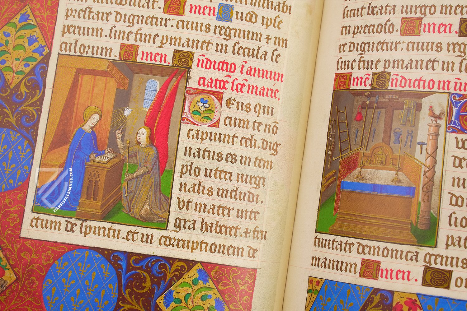 This magnificently illuminated manuscript was created around 1480-90 at the behest of a member of the French royal family, probably King Charles VIII of France himself. It appears to have originally been commissioned as a royal gift to the Archbishop of Rouen. The text is accompanied by 10 large and 25 smaller miniatures, hundreds of large and small decorated initials and countless elegant geometric borders with floral patterns and fleurs-de-lys, the royal symbol of France. The work is considered one of the most extensively illuminated liturgical manuscripts of the late Middle Ages and was probably created by the so-called Master of Jacques de BesanΓ§on and his workshop, a master of book illumination who was active in Paris between 1475 and 1500. The manuscript offers a uniquely artistic insight into the liturgical practice of the late Middle Ages and is therefore a valuable testimony to this period of transition.