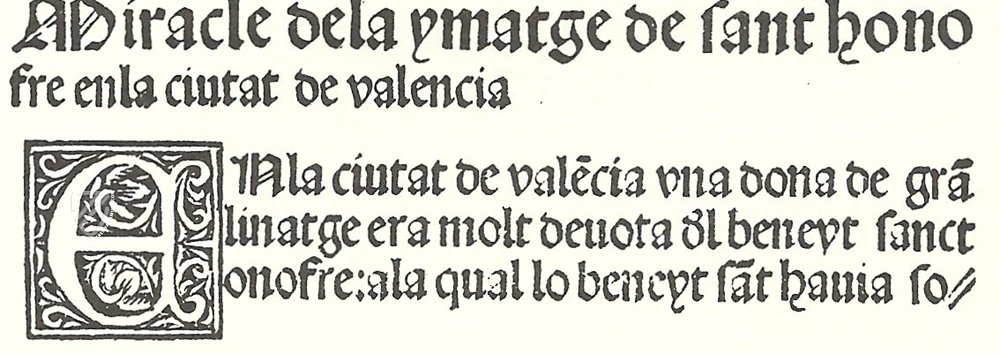 - Title page with a woodcut of the discovery of St Onofre's body; numerous decorated