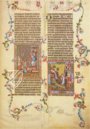 Almost 150 years before Martin Luther (1483–1546) presented his translation of the Bible, King Wenceslas IV (1361–1419) ordered the creation of a truly mammoth work in the history of the biblical text: he summoned to his court in Prague the best illuminators in Europe, who created a masterpiece of gigantic proportions and great attention to detail for him between 1390 and 1400: 607 calves gave their skins for the total of 2,400 pages, on which the two-column text, 646 miniatures, and countless lovingly designed drolleries harmoniously share space. The deposition of Wenceslas as German king in 1400 prevented the completion of the large-scale project, despite later efforts to complete it, so that the New Testament is still missing today. Yet even in its present form, the reader will always find fascinating details: Wenceslas' favorite animal, the kingfisher, Wenceslas' knot, and a graceful woman with a bath tub – might a young lover have stood behind her?