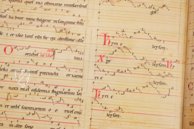This page is the work of a skilled scribe who has also been identified as being one of the hands that created the Scivias manuscript, which means it is undoubtedly the work of the scriptorium in the cloister at Rupertsberg. Featuring 17 βsystemsβ or ensemble staves in red and brown ink per column, the page is neatly and clearly designed so that both the notation and the text are clearly visible. If anything, the scribe left an abundance of space in the margins.